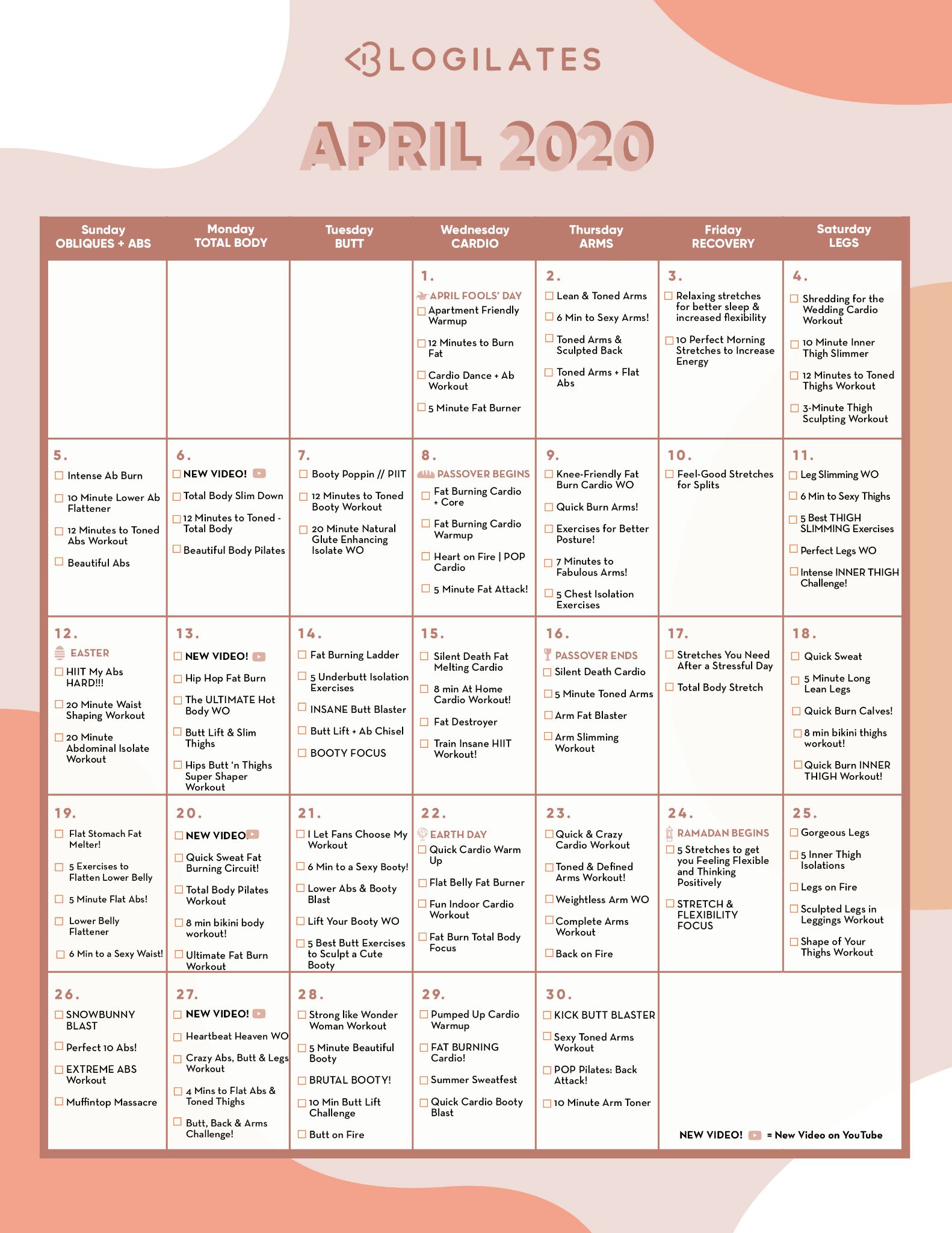 I wish I would have seen this way back in January and bought your planner instead of the one I have. April 29 2021 at 1036 am. The Blogilates April 2020 Workout Calendar Blogilates.